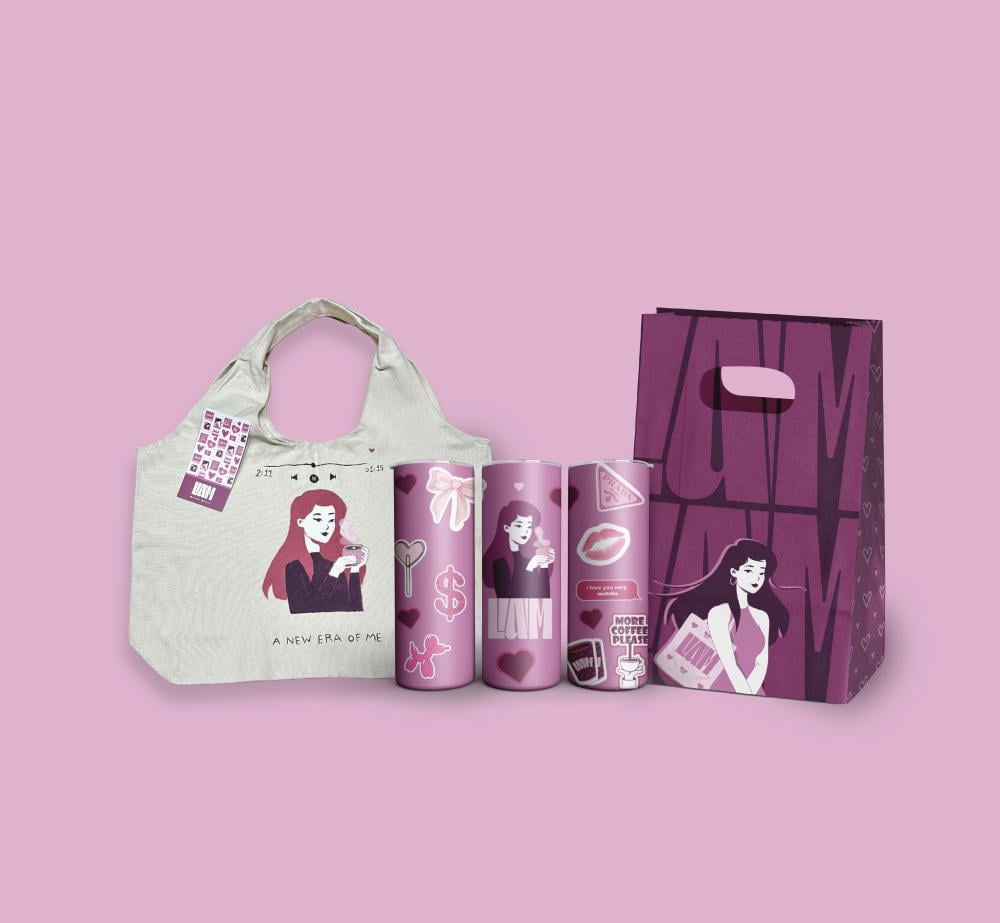 بوكس لـام قيرل 🎀عبارة عن:1 مق لـام مع السترو والغطاء حجم 20 اونصه1 توت باق لـام القماشية برسم يدويالباكجينق ( كيس لـام ، ورق تغليف ، تاق على الحقيبة ، كرت الشكر ).مع هدية ستيكرز لـام🎀